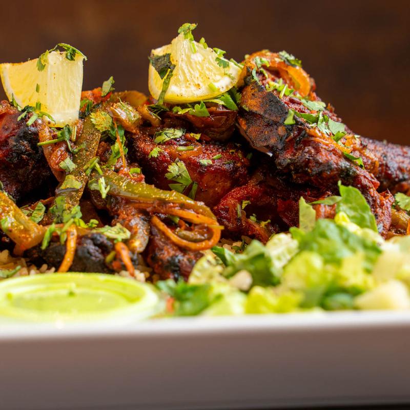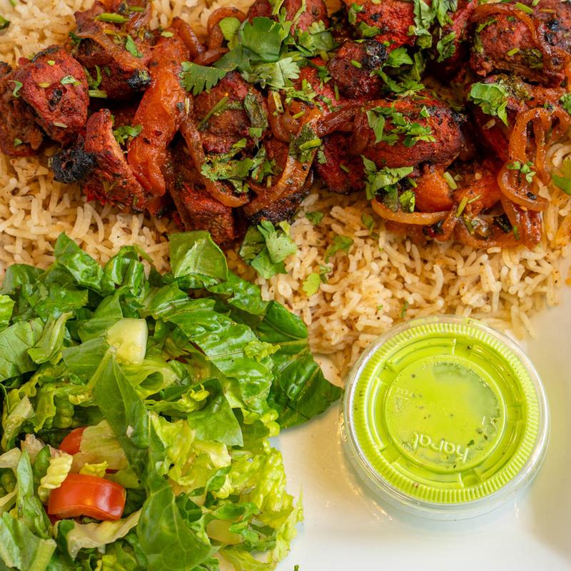 Single $9.00 | Platter (with naan) $11.00 • Boneless breast pieces marinated in traditional spices. Cooked in tandoor.
