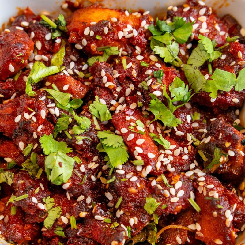 6 pieces of party size wings. Marinated in our signature tandoori sauce. Cooked in tandoor to retain juicy flavor. Sauté in your choice of medium spicy, honey BBQ or sweet n savory chili sauce.